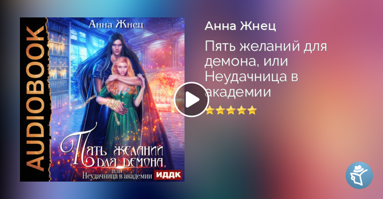 «Пять желаний для демона, или Неудачница в академии» – роман Анны Жнец, жанр любовное фэнтези, магическая академия. Я вызвала демона из мира Ледяной Пустоши! Теперь у меня есть пять желаний, загадав которые я смогу изменить свою жизнь. Из неудачницы, главного посмешища магической академии, превратиться в королеву новогоднего бала. Но вот незадача! Согласно договору, после каждого моего желания демон имеет право загадать свое, и я обязана его исполнить. Глядя в ехидно прищуренные глаза напротив, я с трепетом предвкушаю, что за желания это будут. Что-что? У нашего волшебного соглашения есть и другие подводные камни? Что, говорите, мне надо сделать?