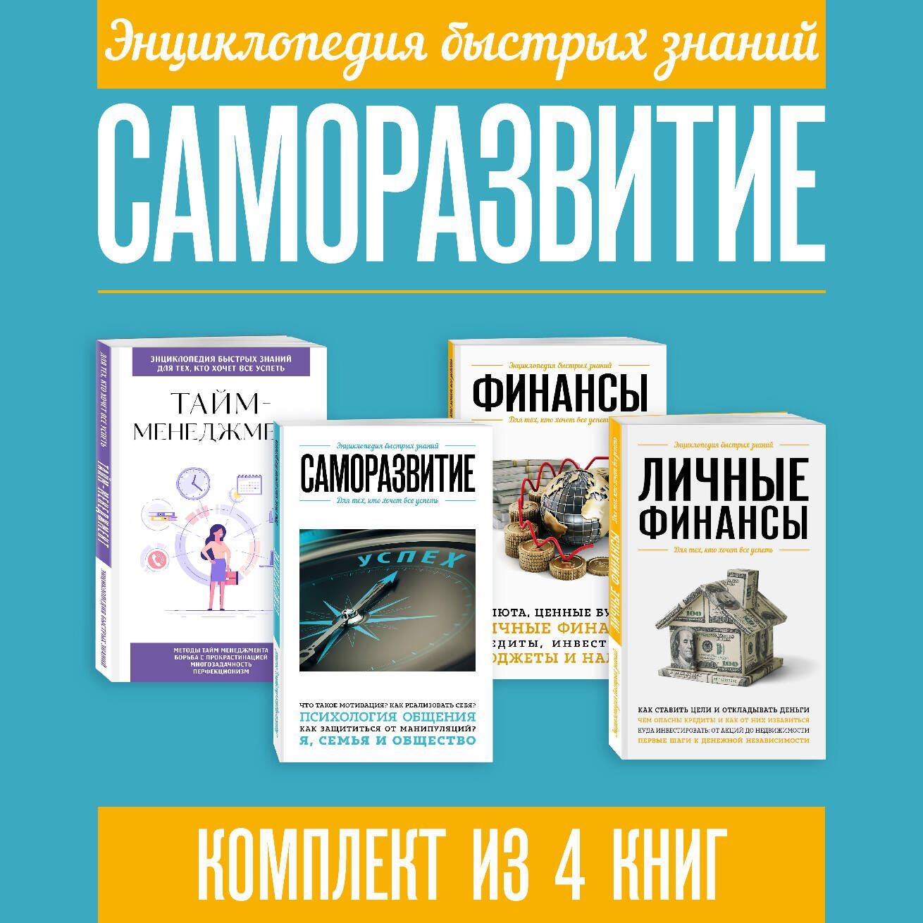 «Энциклопедия быстрых знаний. Саморазвитие» – это практический путеводитель для тех, кто стремится к личному росту, финансовой грамотности и эффективному управлению временем. В сборник вошли четыре книги, которые помогут разобраться в мире личных и семейных финансов, освоить базовые и продвинутые техники саморазвития, а также научиться планировать день так, чтобы всё успевать и не терять мотивацию. Все материалы изложены простым, доступным языком и наполнены рабочими инструментами, советами и упражнениями. Откройте для себя лучшие методики саморазвития, выстраивайте гармоничную и успешную жизнь – с удовольствием и уверенностью в своих силах!