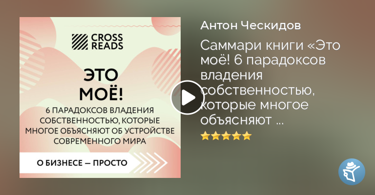 Причины многих конфликтов (от споров за парковочное место до баталий за раскладывание сиденья в самолете) лежат в плоскости понятия «владение». Но как корректно определить, где «мое», а где уже нет? На что вы имеете право, а на что – ваш оппонент? Ведь бизнес, правительства и люди вокруг постоянно меняют правила, а иногда вообще забывают их установить. Два юриста-международника рассказывают о том, как на самом деле работает то, что вызывает споры со времен песочницы и первого крика «Моё!». Главное из их увлекательных рассуждений – в аудиосаммари. Знакомьтесь с ключевыми идеями популярных книг, экономьте время и выбирайте только лучшее с CrossReads.