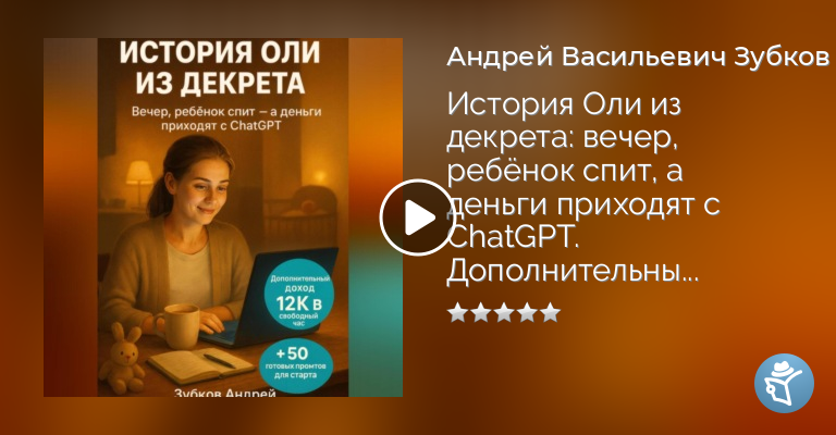 Слушать аудиокнигу «История Оли из декрета: вечер, ребёнок спит, а деньги приходят с ChatGPT. Дополнительный доход 12К в свободный час. + 50 готовых промтов для старта» онлайн: