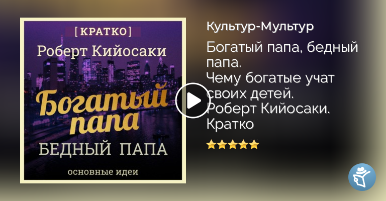Эта книга – сокращенный пересказ произведения Robert T. Kiyosaki «Rich Dad Poor Dad: What the Rich Teach Their Kids About Money That the Poor and Middle Class Do Not!».