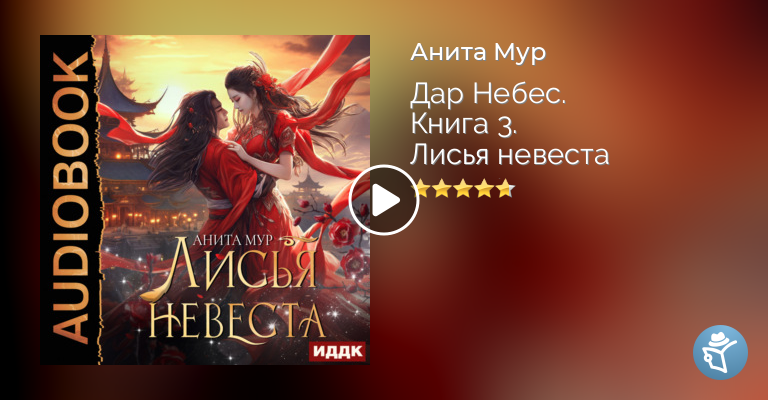 «Лисья невеста» – роман Аниты Мур, третья книга цикла «Дар Небес», жанр любовное фэнтези, азиатское фэнтези, приключенческое фэнтези. Меня подарили лисодемону. Как вещь. Не слишком ценное, но довольно полезное имущество. Только всех ждет сюрприз. Вместо покорной девушки-служанки – спортсменка из другого мира, привыкшая не останавливаться перед трудностями. А еще у меня обнаружился дар, который я собираюсь развивать. Что бы по этому поводу ни думал один хвостатый лисодемон!