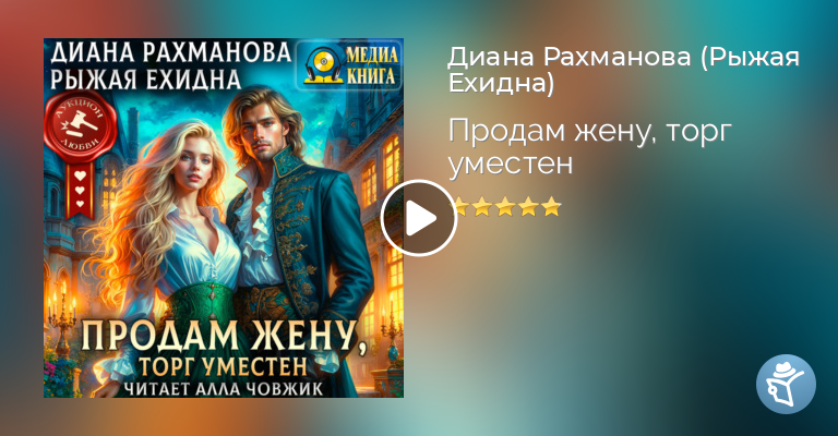 Студия «МедиаКнига» представляет аудиокнигу популярной современной писательницы Дианы Рахмановой (Рыжая Ехидна) – «Продам жену, торг уместен», однотомник из серии «Аукцион любви».