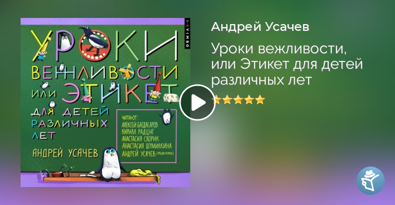 Слушайте смешные и полезные уроки этикета в исполнении звёздной команды – Алексея Багдасарова, Кирилла Радцига, Анастасии Скорик, Анастасии Шумилкиной и Андрея Усачёва.
