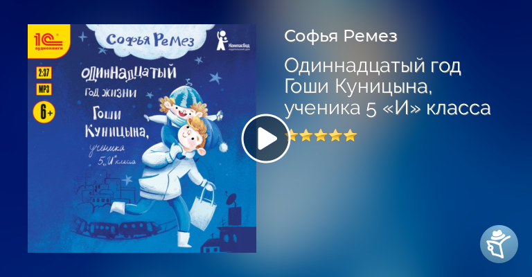 Детская писательница Софья Ремез продолжает в своём творчестве традиции образцовых повествований о семье и школе. Читая и слушая её произведения, умело стилизованные под заметки школьника, вы сразу вспомните и «Денискины рассказы» Виктора Драгунского, и Диму Василькина из книг Виктории Ледерман. Первый полноценный сборник рассказов о Гоше вышел под названием «Заметки Гоши Куницына, ученика 4 „А“ класса», а ранее эти рассказы публиковались в детских журналах по отдельности. Представляем в аудиоформате долгожданное продолжение – книгу «Одиннадцатый год Гоши Куницына, ученика 5 „И“ класса». Теперь Гоша на полном серьёзе хочет стать писателем, и у него неплохо получается, его заметки популярны. Вы же слушали первую книгу? Гоша мальчик обаятельный, и, даже несмотря на то, что часто он ведёт себя не как все, его любят и ценят. А он, кроме друзей, которым всегда стремится помочь, очень ценит семью и даже сочинил целый сборник сказок для младшего братика, а родителям затеял устроить романтическое свидание. Слушайте новые увлекательные истории, которые будут интересны не только детям, но и их родителям, ведь они тоже встретят в книге немало того, что им знакомо из их школьных будней.