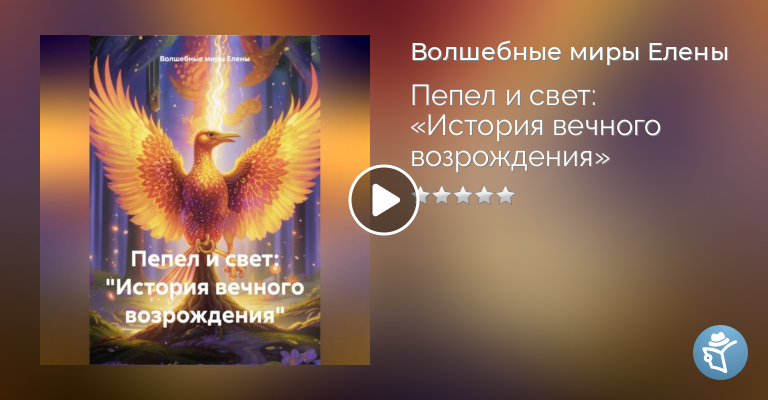 описание сказки:"Пепел и свет: История вечного возрождения"В волшебном лесу, где деревья шепчут древние секреты, а звёзды спускаются так низко, что их можно поймать рукой, жила жар-птица по имени Анабель. Её свет был символом надежды и жизни, но однажды она почувствовала, что её время подошло к концу. С поддержкой мудрого филина Орвина Анабель прошла через сгорание, превратившись в пепел, чтобы однажды возродиться вновь. Её друг Орвин ждал её возвращения, охраняя пепел и веря в её свет. Когда Анабель вернулась, её свет стал ещё ярче, а лес снова наполнился жизнью. Эта сказка – о цикле жизни, о дружбе, которая сильнее времени, и о том, что даже после самых тёмных времён всегда есть шанс на новое начало.