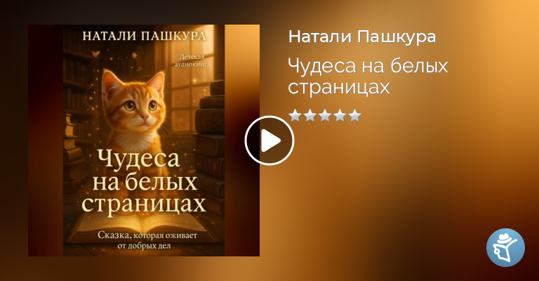 «Чудеса на белых страницах» – волшебная и глубокая аудиосказка для детей, написанная с любовью и теплом.Главный герой – милый оранжевый котёнок – ищет ответы на важные вопросы: что такое любовь, почему случаются чудеса, и зачем человеку мечта? Вместе с новыми друзьями он отправляется в добрые, иногда трогательные, а порой даже волшебные приключения. Эта сказка:учит чувствовать и понимать себя,помогает справляться с одиночеством,создаёт атмосферу доверия, тепла и безопасности. Идеально для детей от 4 до 10 лет. Авторская озвучка. Душевно. По-настоящему. Подходит для семейного прослушивания и работы с детским психологом.