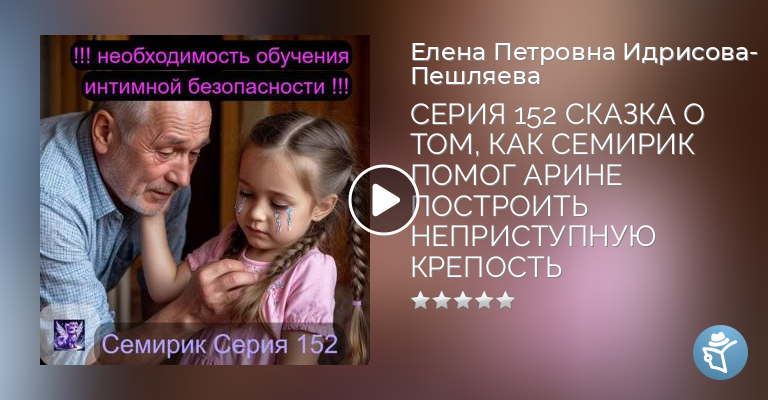 Как научить ребёнка защищать свои границы? Эта мудрая и тактичная сказка идеальный инструмент. История про девочку Арину и волшебного Семирика, который объясняет, что наше тело это личная крепость, а чувство «мне неприятно» её стражник. Сказка даёт детям простые и ясные правила: право говорить «НЕТ» любому прикосновению, доверять своим ощущениям и понимать, что их тело принадлежит только им. Рекомендации для родителей (КЛЮЧЕВОЕ!):1. Слушайте ВМЕСТЕ с ребёнком. После обсудите: что такое «крепость»?2. Отрепетируйте фразы: «Мне это неприятно, остановись», «Я не хочу это делать».3. Подчеркните: это правило работает для ВСЕХ, включая родственников и друзей.4. Объясните разницу между «плохими» и «хорошими» секретами (хороший секрет это подарок, плохой тот, что вызывает тревогу и просят никому не говорить).