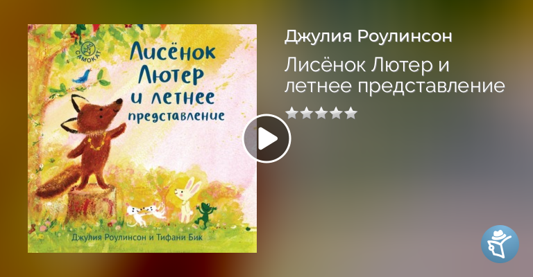 Музыку исполнил Андрей Крючков, композитор, гитарист группы «Perfect Armor» и звукорежиссёр студии звукозаписи «MIR». 5 причин купить книгу «Лисёнок Лютер и летнее представление»: • Идеальное совместное времяпрепровождение перед сном для 3-6 лет; • Милые герои и нежное исполнение Розы Шмуклер; • Удобный формат для маленьких любителей слушать аудиокниги «по кругу»; • Повод найти то, что получается у вас лучше всего и отточить свои навыки за лето. И, конечно, устроить своё собственное летнее представление!
