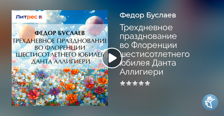 «В этой главе предложу свое чтение, сказанное в Обществе Любителей Российской Словесности, в мае 1865 года, о трехдневном праздновании шестисотлетнего юбилея дня рождения Данта Аллигиери. По счастью, я провел во Флоренции целые два месяца в 1864 году и имел случай в самом средоточии юбилея воспользоваться всевозможными документами, журналами, газетами и другими пособиями по этому предмету. Из Флоренции я послал в „Русский Вестник“ обстоятельную статью о приготовлениях всей Италии к предстоящему юбилею, и по возвращении в Москву, в следующем 1865 году, в самый день юбилея, рассказал членам Общества Любителей Российской Словесности, что именно происходит во Флоренции в то самое время, когда мы все собрались в московском заседании…»