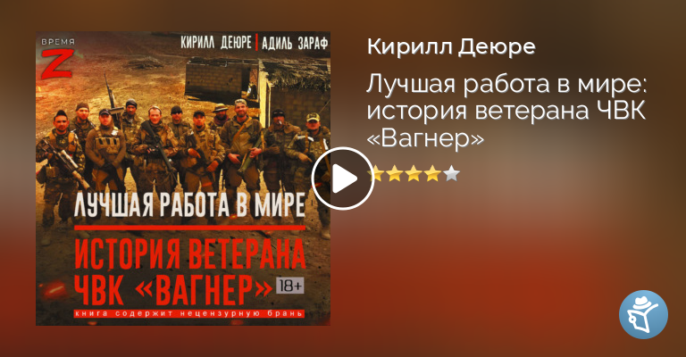 Книга «Лучшая работа в мире: история ветерана ЧВК „Вагнер“» Кирилла Деюре и Адиля Зарафа представляет собой уникальное свидетельство очевидца, прошедшего через современные локальные военные конфликты XXI века – от Северного Кавказа до Сирии и Ливии. В центре повествования – личный опыт бойца самого известного российского частного добровольческого формирования, дослужившегося до должности командира разведвзвода. Перед читателем разворачивается подлинная хроника событий, собранная в откровенные и жёсткие мемуары, где фронтовая правда звучит без прикрас. Будни бойцов, их испытания, потери и редкие мгновения облегчения. Это не роман и не публицистика, а прямая речь участника, где каждая деталь прожита и выстрадана, а история становится частью общей памяти о войне. «Мы жили войной такой, какая она есть на самом деле, а не такой, как её рисуют на картах. И это действительно – лучшая работа в мире».