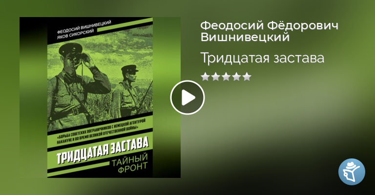 «Тишина на заставе. Неслышно уходят и приходит наряды. Завтра воскресенье – можно будет повеселиться в клубе, а сейчас – зорче смотри, пограничник: в твоих руках – спокойствие Родины. И никто на заставе не мог предположить, что случится завтра». Так заканчивается первая часть повести «Тридцатая застава», рассказывающая о трудной, но благородной службе советских пограничников. Вторая часть повествует о боевых действиях заставы в годы Великой Отечественной войны, о боях и походах, борьба воинов-пограничников с гитлеровской агентурой, о том, как застава, в результате стремительного наступления Советской Армии, снова вышла на старую границу. Повесть написана на богатом фактическом материале. Один из авторов – Ф. Вишнивецкий – сам был участником событий, описанных в книге.