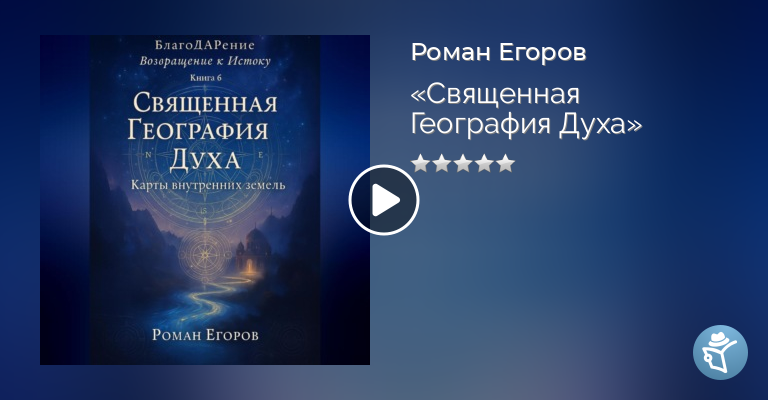 Проект «БлагоДАРение». Серия «Возвращение к Истоку»Книга 6. «Священная География Духа»Карты внутренних земель«Все дороги ведут домой, потому что дом – это не место, куда приходят, а то, из чего никогда не уходили»Что, если все места, которые мы ищем во внешнем мире, уже существуют в пространстве нашего сознания? Что, если каждое путешествие – это экспедиция по внутренним землям души?Шестая книга серии «Возвращение к Истоку» открывает удивительную истину: мы не находимся в пространстве – пространство находится в нас. Автор ведёт читателя от поисков центра мироздания к обнаружению горизонтов беспредельности, от исследования внутренних измерений к встрече с всевмещающей пустотой.Это не путеводитель по внешним землям, а атлас души – карта тех территорий сознания, где каждое место оказывается священным, каждый храм – внутренним, а каждая дорога ведёт домой к самому себе.Для тех, кто готов обнаружить, что дом всегда был здесь, в священном пространстве собственного присутствия.