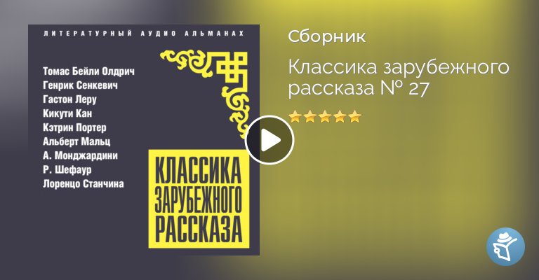 Томас Бейли Олдрич «Марджори Доу» 0:53:00 Генрик Сенкевич «Комедия ошибок» 0:43:00 Гастон Леру «Лилипут» 0:09:00 Кикути Кан «Смех» 0:29:00 Кэтрин Портер «Как была брошена бабушка Везерол» 0:27:00