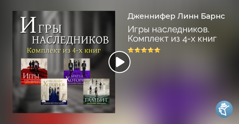 Мировой бестселлер! Более 4 млн проданных экземпляров! Топ-10 бестселлеров The New York Times и USA Today. Экранизация от Amazon. Игры наследников История семнадцатилетней сироты, которая получила в наследство 46 миллиардов долларов. Но за них ей еще придется побороться с другими наследниками. Детектив-квест, наполненный неожиданными сюжетными поворотами и увлекательными головоломками. Сорок шесть миллиардов долларов. Такое состояние завещал перед смертью миллиардер Тобиас Хоторн семнадцатилетней Эйвери. Девушка никогда не знала о существовании старика, который обожал загадки, анаграммы и всевозможные квесты. Чтобы получить свою долю наследства, Эйвери должна сыграть в рискованную игру, придуманную эксцентричным богачом. Но его наследники готовы пойти на все, чтобы соперница не получила огромное состояние. «Наследие Хоторнов» Продолжение мирового бестселлера «Игры наследников». Еще недавно Эйвери Грэмбс была сиротой, которая сводила концы с концами. Она мечтала получить стипендию и начать новую жизнь. Но потом узнала о смерти одного из богатейших людей в стране. Самое неожиданное, что Тобиас Хоторн завещал ей сорок шесть миллиардов долларов. Чтобы унаследовать богатство, Эйвери пришлось сыграть в опасную игру, придуманную эксцентричным стариком. Борьба за наследство продолжается. Теперь Эйвери предстоит узнать, почему миллиардер выбрал именно ее. И почему был уверен, что только она сможет объединить его семью. «Последний гамбит» «Последний гамбит» – продолжение книги «Игры наследников». Все, что осталось Эйвери Грэмбс сделать, чтобы получить наследство – прожить несколько недель в особняке Хоторнов до своего совершеннолетия. Но это не так-то просто, ведь с каждым днем напряжение нарастает. Папарацци преследуют ее на каждом шагу, и ее жизни постоянно грозит опасность. Только поддержка братьев помогает Эйвери все это выдержать. Она считала, что раскрыла все тайны семьи Хоторнов, пока на пороге ее дома внезапно не появился незваный гость. Осталось решить последнюю загадку. Эйвери и братьям вновь предстоит сразиться с могущественным противником. На этот раз на кон поставлено все. «Братья Хоторны» Победитель премии GoodReads Choice Awards. Книга года по версии журналов Kirkus Reviews и Publishers Weekly. Вековая тайна. Подпольный игорный дом. Деньги, власть и ставки. Четыре брата, и две опасные миссии. Абсолютный бестселлер «Игры наследников» Дженнифер Линн Барнс возвращается!