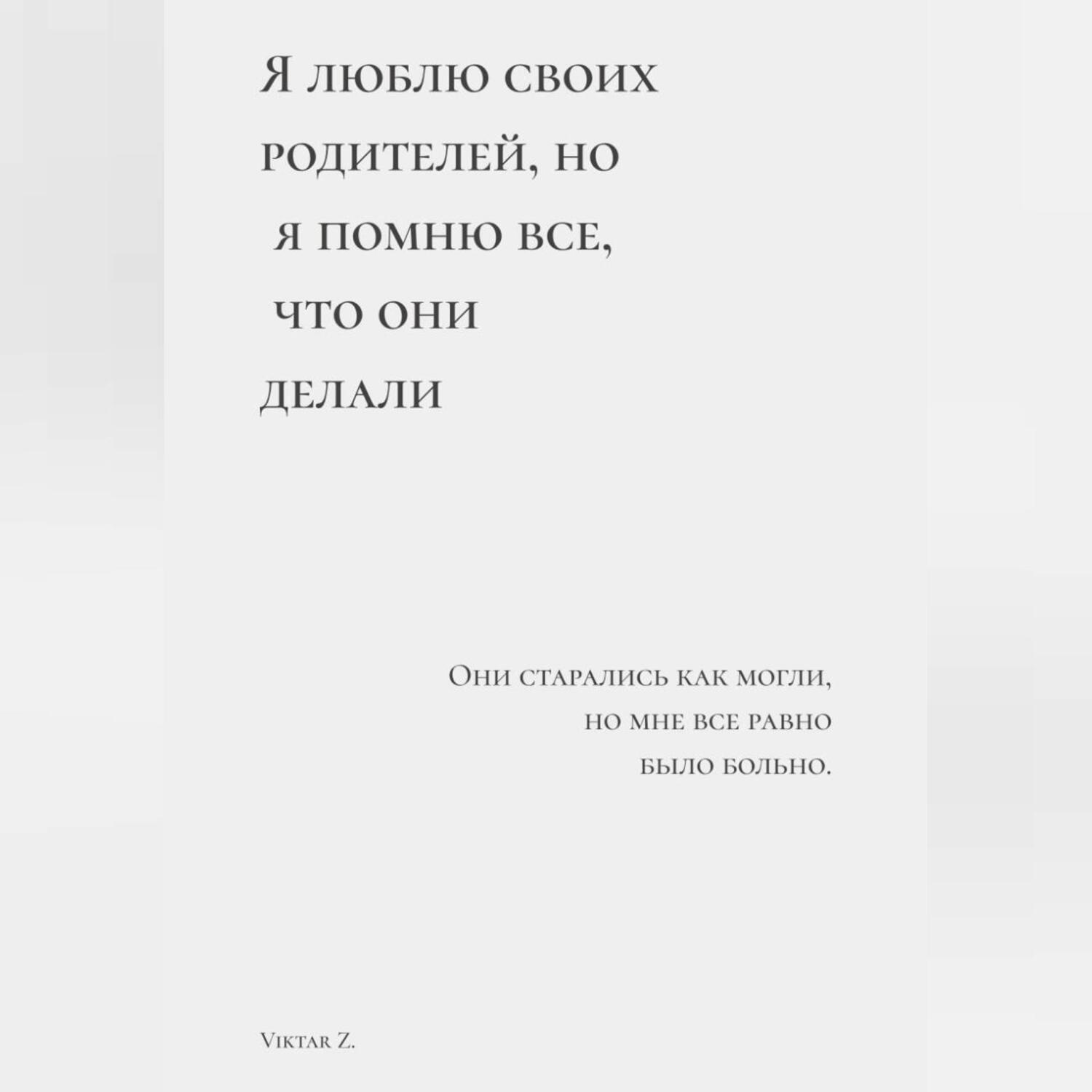 Это книга не о конфликте. И не о прощении.Она о взрослом человеке, который продолжает любить – и при этом помнит.Без обвинений. Без попытки оправдать. Без требований «отпустить» или «исцелиться».Здесь нет финальных разговоров, которые всё исправляют. Нет надежды, что прошлое можно переписать. Нет призыва к примирению любой ценой.Эта книга – о том, как жить дальше, когда родители стали мягче, а память – никуда не делась.О дистанции, которая не является наказанием. О границах без драмы. О любви, которая существует рядом с ясностью. О правде, которую больше не нужно доказывать.Это тихий текст для тех, кто:* не хочет рвать отношения, но и не может притворяться;* не ищет виноватых, но помнит, как было;* устал объяснять, почему ему всё ещё непросто;* живёт без закрытия – и выбирает целостность.Без обещаний. Без решений. Без финала.