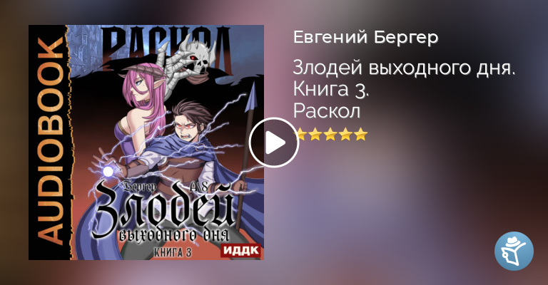 «Злодей выходного дня. Раскол» – роман Евгения Бергера, третья книга цикла «Мир Рагнакара», жанр ЛитРПГ, боевое фэнтези, юмористическое фэнтези. Что нужно сделать для того, чтобы уничтожить стаю гадюк? Правильно – подбросить к ним гадюку покрупнее! Третья книга эпических приключений короля демонов и носителя гордого титула «Господин Вечно Сломанная Тазобедренная Кость».