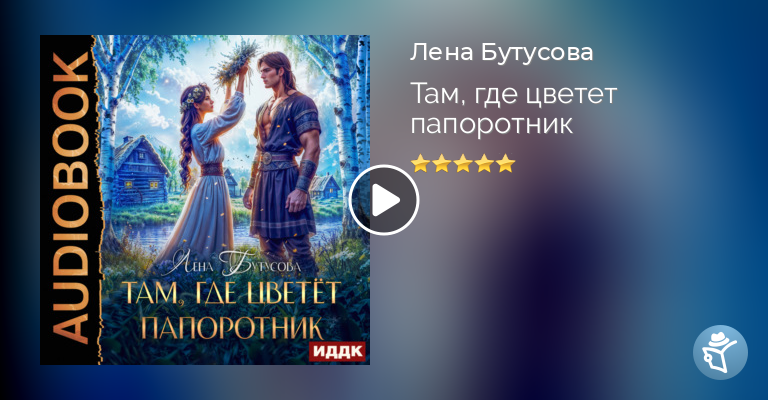 «Там, где цветет папоротник» – роман Лены Бутусовой, жанр любовное фэнтези, славянское фэнтези. Любомира – ученица деревенской травницы. Ни родителей, ни суженого, все богатство – лишь маленький братец, да домовенок под печкой. В одну из праздничных летних ночей судьба сводит ее с угрюмым охотником, живущим на окраине поселка. Они одновременно прыгают через обрядовый костер и должны теперь провести вместе ночь, но вместо статного молодца Любомире видится в пламени образ страшного зверя, медведя-оборотника… Девушка в страхе бежит прочь, нарушив уговор, а на утренней заре гуси-лебеди уносят из дома ее маленького братца. И никто не отваживается помочь сироте в поисках, кроме того, кому она пообещала отдать свою девичью чистоту.