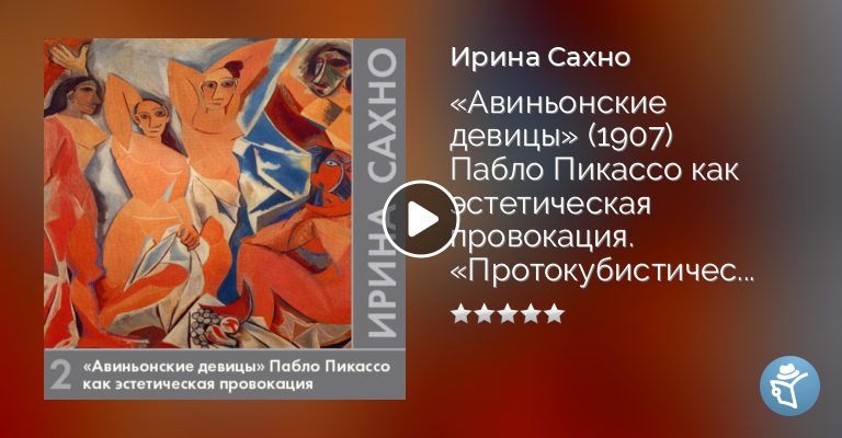В центре внимания автора – картина Пабло Пикассо «Авиньонские девицы» (1907) и формирование первой авангардистской школы – кубизма. Эта протокубистическая композиция надолго определила движение европейского искусства по пути формального эксперимента. Влияние «примитивных культур» и пластического языка архаической иберийской скульптуры и африканских масок можно найти в ранних работах Пабло Пикассо, которые Альфред Барр назвал «протокубистические постскриптумы». Эволюцию художественного стиля наблюдаем в работах «аналитического» и «синтетического» кубизма и в технике коллажа.