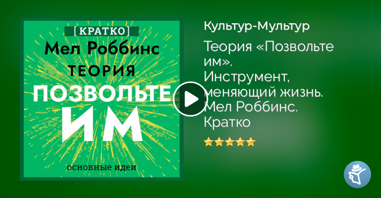 «Эта книга – сокращенный пересказ произведения Mel Robbins „The Let Them Theory: A Life-Changing Tool That Millions of People Can't Stop Talking“. Мы значительно уменьшили объем текста, сохранив все основные идеи. Что, если ключ к счастью, успеху и любви заключался всего в двух словах? Если вы когда-либо чувствовали себя в тупике, подавленным или разочарованным своим положением, проблема не в вас. Проблема в силе, которую вы отдаёте другим. Два простых слова – «Позвольте им» – освободят вас. Освободят от мнений, драм и осуждений окружающих. Освободят от изнурительного цикла попыток управлять всем и всеми вокруг. Теория «Позволь им» возвращает вам силу создавать жизнь, которую вы любите, – и эта книга покажет вам, как это сделать. В своей последней новаторской книге «Теория „Позволь им“» Мел Роббинс – автор бестселлеров по версии New York Times и один из самых уважаемых в мире экспертов по мотивации, уверенности в себе и мышлению – учит вас, как перестать тратить энергию на то, что вы не можете контролировать, и начать концентрироваться на том, что действительно важно: на ВАС. Вашем счастье. Ваших целях. Вашей жизни. Используя практичный и научно обоснованный подход, Роббинс объясняет, почему теория «Позволь им» уже полюбилась миллионам людей, и как вы можете применить её в восьми ключевых сферах жизни, чтобы добиться наибольшего эффекта. Всего через несколько страниц вы поймёте, сколько энергии и времени вы тратите, пытаясь контролировать не то, что нужно – на работе, в отношениях и в достижении своих целей, – и как это мешает вам достичь счастья и успеха, которых вы заслуживаете. В виде простого и понятного руководства автор делится историями из своей жизни, выделяет ключевые выводы, приводит актуальные исследования и знакомит вас с всемирно известными экспертами в области психологии, нейробиологии, отношений, счастья и древней мудрости, которые отстаивают теорию «Позволь им» на каждом этапе пути. Узнайте, как: • Перестать тратить энергию на то, что вы не можете контролировать • Перестать сравнивать себя с другими • Освободиться от страха и неуверенности в себе • Освободиться от гнета чужих ожиданий • Создать лучшие дружеские отношения в своей жизни • Создать любовь, которую вы заслуживаете • С уверенностью добиваться того, что действительно важно для вас • Развивать устойчивость к повседневным стрессам и отвлекающим факторам • Определить свой путь к успеху, радости и самореализации •… и многому другому. Теория «Позвольте им» навсегда изменит ваше представление об отношениях, контроле и личной силе. Хотите ли вы продвинуться по карьерной лестнице, мотивировать других к переменам, идти на творческий риск, обрести более крепкие связи, выработать полезные привычки, начать новую главу или просто стать счастливее в своей жизни и отношениях, эта книга даст вам настрой и инструменты для полного раскрытия вашего потенциала»
