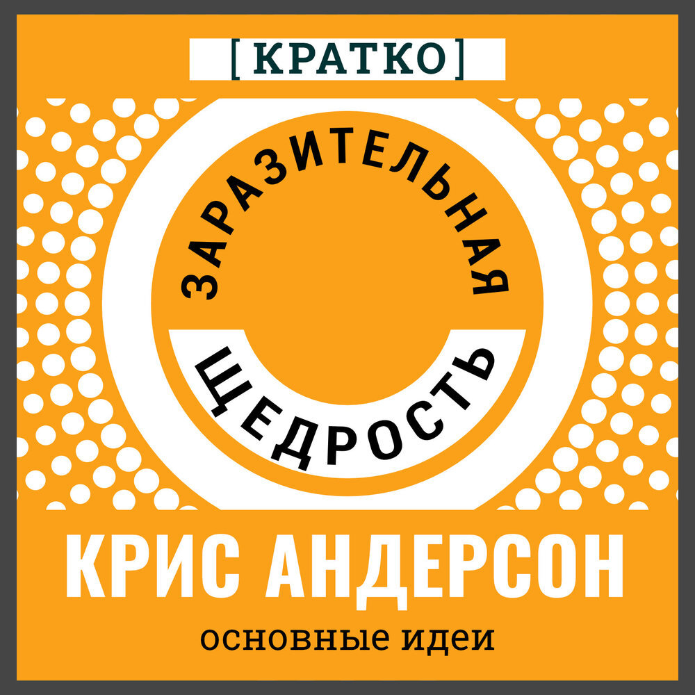Давайте посмотрим правде в глаза: последние годы выдались непростыми для оптимистов. Надежды на то, что интернет сможет объединить людей, были разрушены недугами социальных сетей. Есть ли путь назад? В качестве главы TED Крис Андерсон наблюдал за тем, как самые смелые мыслители мира делятся своими самыми вдохновляющими идеями. Вдохновленный ими, он верит, что мы можем снова превратить негодование в оптимизм. Всё сводится к переосмыслению одной из самых основополагающих человеческих добродетелей: щедрости. Что, если щедрость может стать заразительной? Вспомните, как лондонский парикмахер начал стричь бездомных и положил начало движению. Как два анонимных спонсора пожертвовали по 10 000 долларов двумстам незнакомцам и обнаружили, что большинство получателей хотели «отплатить вперёд» своими щедрыми поступками. Как сам TED превратился из узкоспециализированного ежегодного саммита в глобальный источник идей, организовав онлайн-лекции и предоставив миллионам людей доступ к бесплатному обучению. Рассказывая эти вдохновляющие истории, Андерсон подарил нам «первую захватывающую историю о человеческой щедрости». Что ещё важнее, он предлагает руководство по тому, как начать совершать собственные щедрые поступки – будь то денежные пожертвования, время, талант, связи или доброта – и подготавливать их, благодаря Интернету, к самовоспроизводящемуся, даже меняющему мир влиянию.»