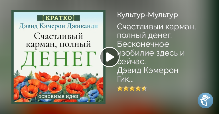 «Счастливый карман, полный денег», впервые опубликованный в 2001 году, так впечатлил Ронду Берн, что она попросила автора Дэвида Кэмерона Джиканди стать креативным консультантом по глобальному кинофеномену «Секрет». Настоящее богатство – это не ведра с деньгами. Настоящее богатство – это не дизайнерская одежда. Это не новый Мерседес. Это не жизнь в роскошном поместье. Настоящее богатство – это открытие ценности внутри себя и ценности в других людях. Это своего рода осознанная жизнь, которая включает в себя благодарность, веру в изобилие и опыт радости. Основываясь на последних открытиях теоретической физики и внимательном чтении вдохновляющей классики прошлого века, Джиканди создает новую модель создания личного богатства; новую модель, которая показывает читателям, как создавать изобилие, экономя, отдавая, занимаясь благотворительностью и строя счастливые отношения. Научитесь использовать внутреннюю мантру для развития сознания богатства. Практикуйте осознанные и преднамеренные мысли и намерения. Решите, определите и поставьте цели, в которые вы можете верить. Практикуйте благодарность, даяние и веру, и почувствуйте изобилие и радость в своей жизни.