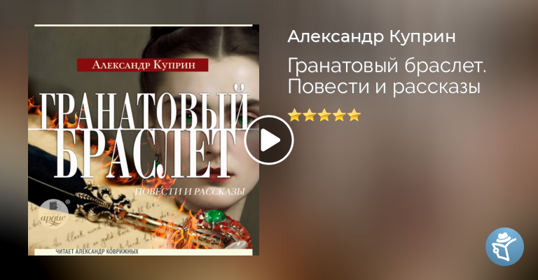 В аудиокнигу включены произведения классика русской литературы Александра Куприна (1870-1930). Названа она по повести, основанной на реальных событиях. В день именин княгиня Вера Николаевна Шеина получила от давнего анонимного поклонника подарок ‒ золотой браслет с пятью крупными гранатами-кабошонами густо-красного цвета, окружающими зелёный камень ‒ гранат редкого сорта…