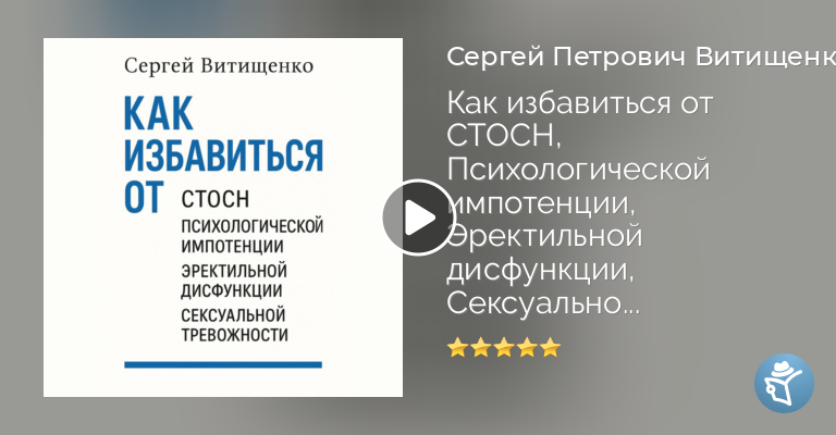 Эта книги для мужчин, которые столкнулись с трудностями в постели, такими как Синдром Тревожного Ожидания Сексуальной Неудачи СТОСН, Психологической импотенцией, Эректильной дисфункцией, Сексуальной тревогой, различными психологическими проблемами с эрекций. Также, эта книга для специалистов: психологов, сексологов, врачей, кто работает с сексуальными дисфункциями. Техники, упражнения, практики и рекомендации в этой книге, помогут мужчинам самостоятельно избавиться от этих проблем, а специалистам узнать все об этих проблемах, и как с ними работать, чтобы мужчины исцеляли свои психику, преодолевали страхи, убирали когнитивные искажения и ложные убеждения.