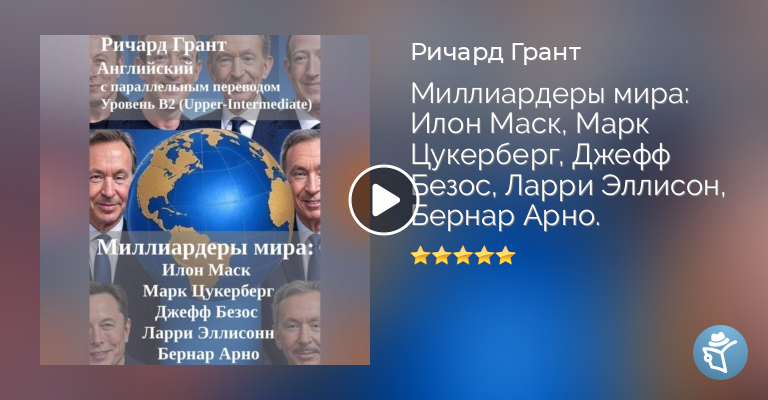 Миллиардеры мира – это уникальный сборник, состоящий из пяти книг, каждая из которых посвящена одному из самых влиятельных и богатых людей планеты. Илона Маска, Марка Цукерберга, Джеффа Безоса, Ларри Эллисона и Бернара Арно объединяет не только огромное состояние, но и яркие биографии, полные амбиций, рисков и неожиданных решений.Тексты написаны на английском языке на уровне B2, что делает их идеальными для изучающих язык. Каждый абзац сопровождается параллельным переводом на русский, что облегчает понимание и помогает обогатить словарный запас. Вас ждут живые, увлекательные истории, которые одновременно развивают английский и вдохновляют на большее.