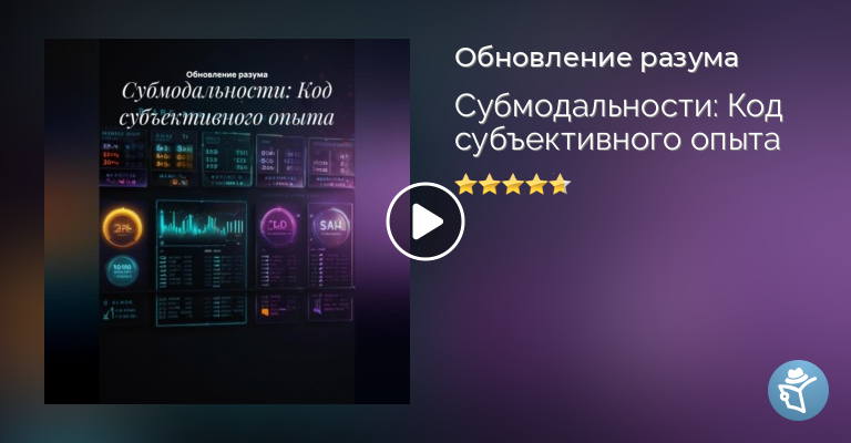 Продвинутый практический мануал по работе с субмодальностями – тончайшими параметрами нашего внутреннего опыта (образов, звуков, ощущений). Узнайте, как диагностировать уникальный «код» любого состояния, ослаблять негативные переживания и усиливать ресурсные, трансформировать воспоминания и реакции (включая детальный паттерн «Взмах»), а также конструировать новые мощные состояния «с нуля». Получите прямой доступ к пульту управления вашим субъективным миром для глубокой личностной трансформации.