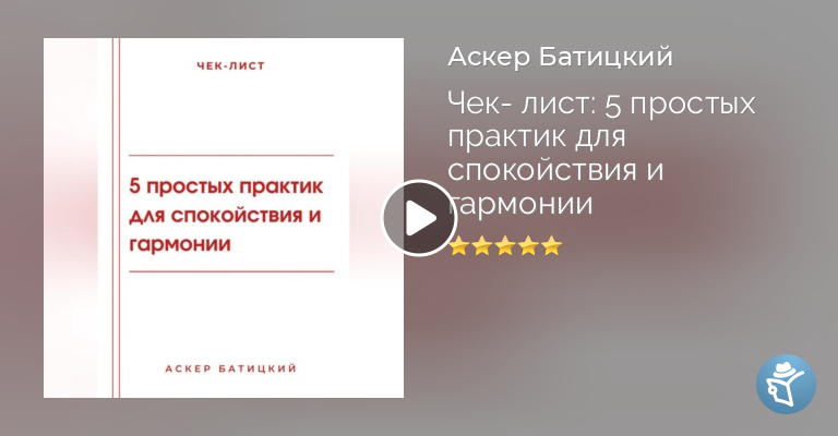 «Чек-лист: 5 простых практик для спокойствия и гармонии» – это мини-книга-помощник для тех, кто устал от спешки, шума и внутреннего напряжения. Здесь ты найдёшь пять простых, но мощных практик, которые помогут быстро восстановить внутренний баланс, снять стресс и почувствовать связь с собой.В этой книге нет сложных техник – только спокойствие, мягкость и ясность. Каждое упражнение подойдёт даже тем, у кого совсем нет времени, и откроет доступ к твоим внутренним ресурсам: тишине, телесной осознанности, свету, благодарности и природе.Эти практики можно выполнять дома, на работе или в дороге. Они не требуют подготовки – только твоего внимания и желания позаботиться о себе. Даже несколько минут в день могут изменить твоё состояние.Открой книгу – и сделай первый шаг к внутреннему покою.
