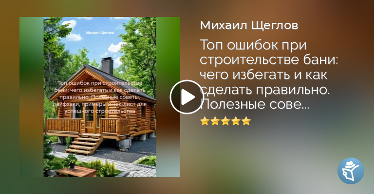 Слушать аудиокнигу «Топ ошибок при строительстве бани: чего избегать и как сделать правильно. Полезные советы, лайфхаки, примеры и чек-лист для успешного строительства.» онлайн: